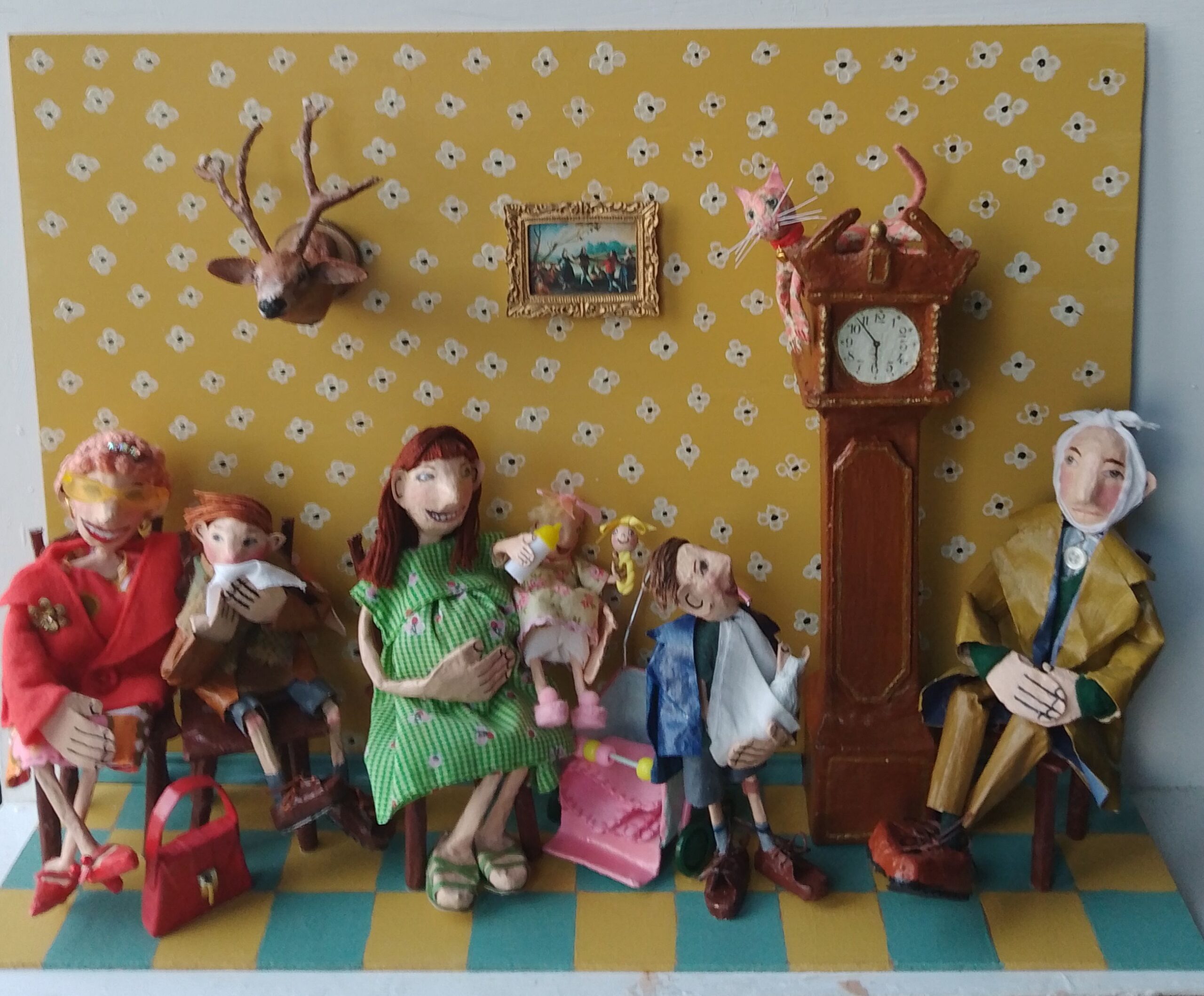 A lot of my inspiration comes from my childhood memories, I am inspired by the everyday life from that time, such as the visits to the local butchers, and the doctor’s surgery with my gran. The image of one particular painting in the surgery has stayed with me all my life, which inspired me to create a story box ‘The Doctors Surgery’, I feel the need to record my memories in the art that I create.